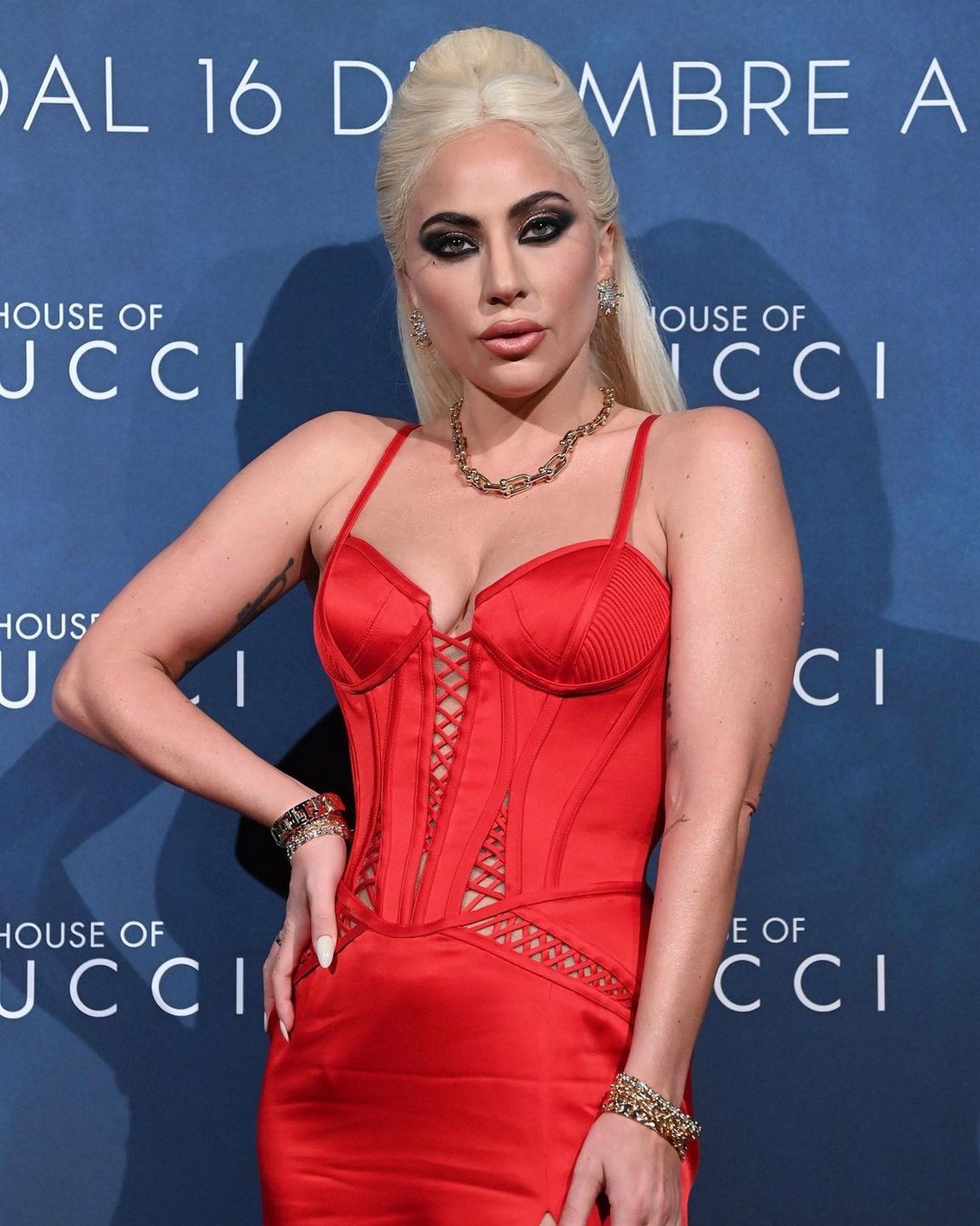 Удивительная вещь: мы ожидали, что на каждой премьере нашумевшей новой картины Ридли Скотта «Дом Gucci» Леди Гага будет появляться в вещах бренда, который, мы уверены, прославит ее в истории кино… Но, нет. . Гага посчитала, что отметки бренда в названии фильма достаточно, и внесла разнообразие в гардероб. Поэтому на миланскую премьеру в календаре она пришла в платье Versace. «Идеологический» спор «о Gucci в Versace» сохраняется, но стилистически к звезде и ее команде (Сандра Амадор и Том Эребут) вопросов нет.
