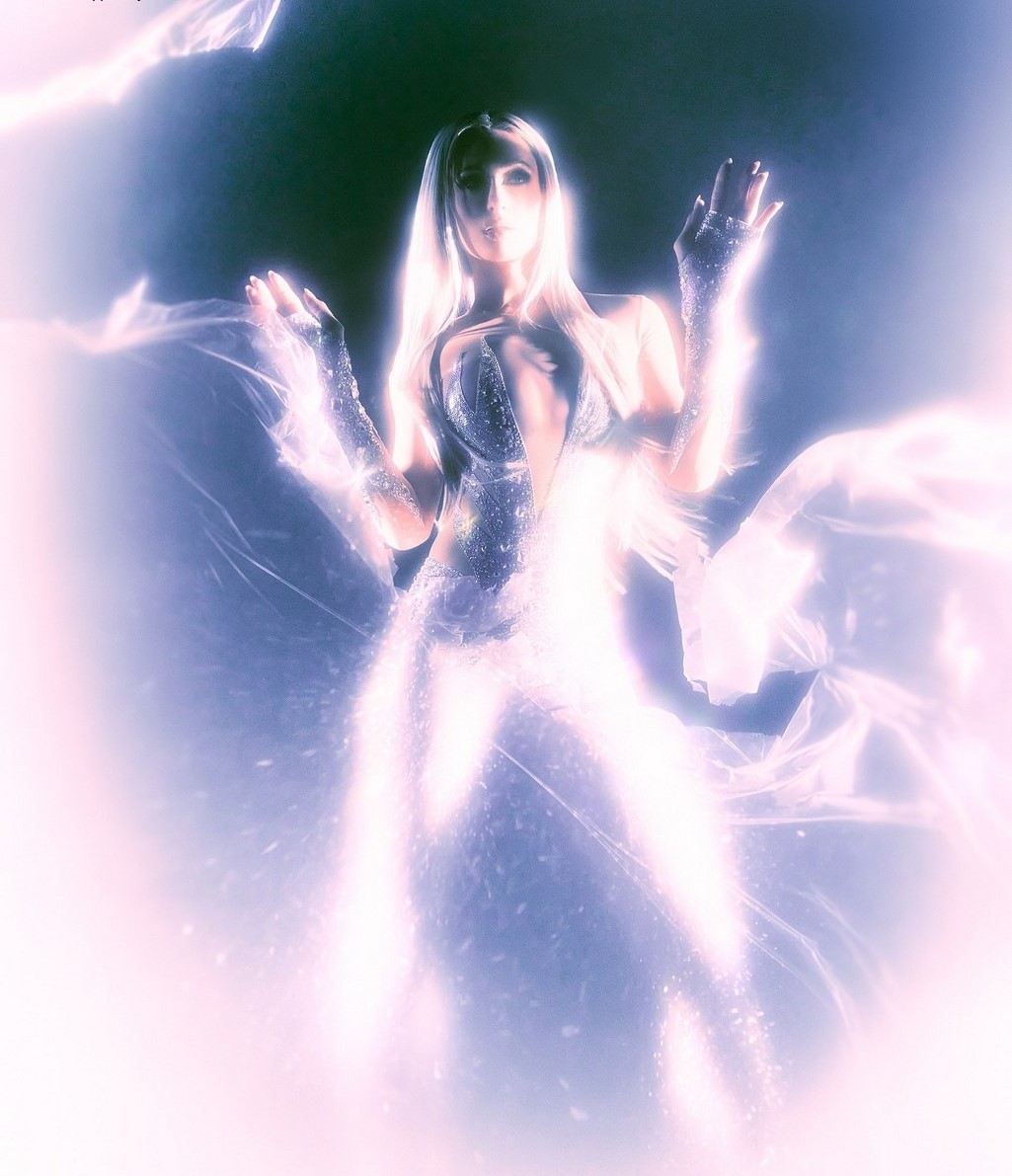 блестит, как будто покрыта драгоценной пылью. Внешний вид дополняется длинными перчатками, усыпленными кристаллами,
